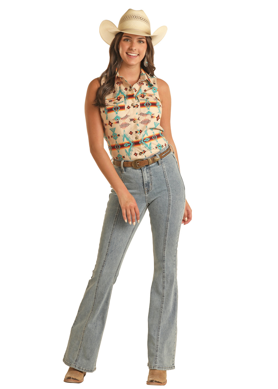 ROCK N ROLL GIRLS AZTEC PRINT BUTTON FLARE